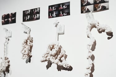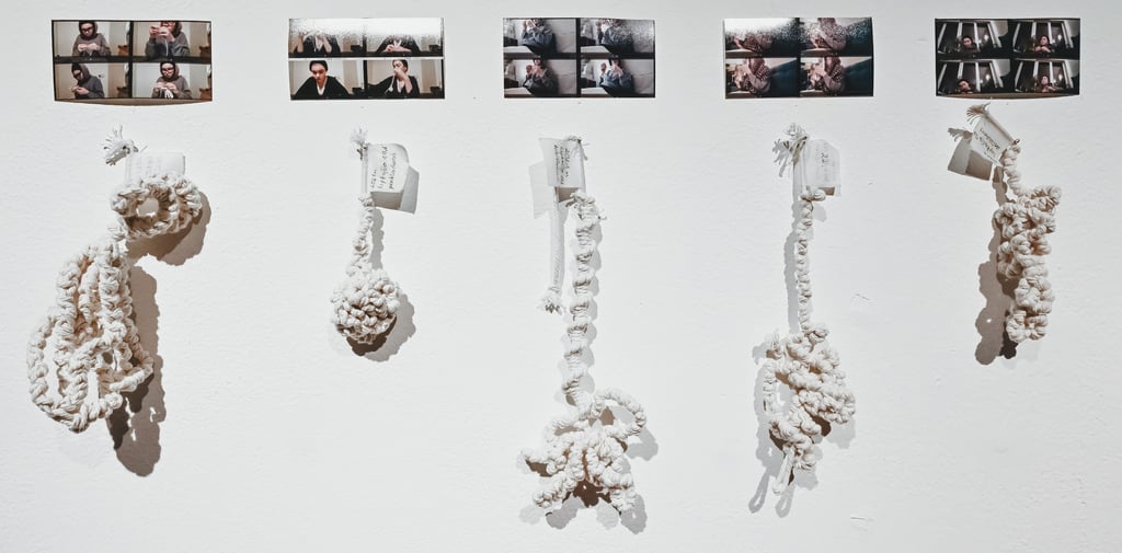 Ieva Laskevičiūtė šia instaliacija siekia diskutuoti apie pasikartojimą, skirtumus, originalumą, autentiką, kūrybą ir kasdienybę. Svarbi šio darbo aplinkybė ta, jog šis tyrimas buvo vykdomas labai tamsiu autorės gyvenimo laikotarpiu, kai nebeaišku kaip išsivaduoti iš kūrybinės stagnacijos, depresijos, priklausomybių ir nuolatinės nakties, susiplakusios su dienomis, kurioje nebėra jokio skirtumo. Tad šiame darbe kasdieniai gyvenimo klausimai tapo ir kūrybos klausimais. Jei jau pasikartojimas nepalieka, galbūt galima sužinoti kaip jis gali kurti išskirtinumus, kada jis tampa nepakartojamu ir autentišku. Toks ir yra viso darbo klausimas: bandoma atsakyti ar originalumas (skirtumas) egzistuoja, kas jis iš tiesų yra ir kokiu būdu galima sukurti ar atrasti išskirtinumus pasikartojimuose. Šiuo darbu yra galutinai apsimazgojama (apsivaloma), o kiekvienas sumegztas mazgelis tampa be galo brangus tiek talpinama medžiaga, tiek ir suteikta pagalba išgyventi šį periodą.