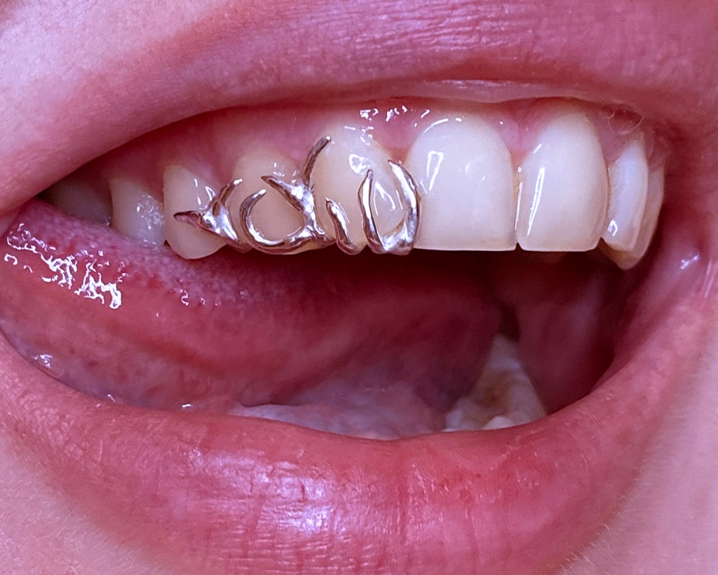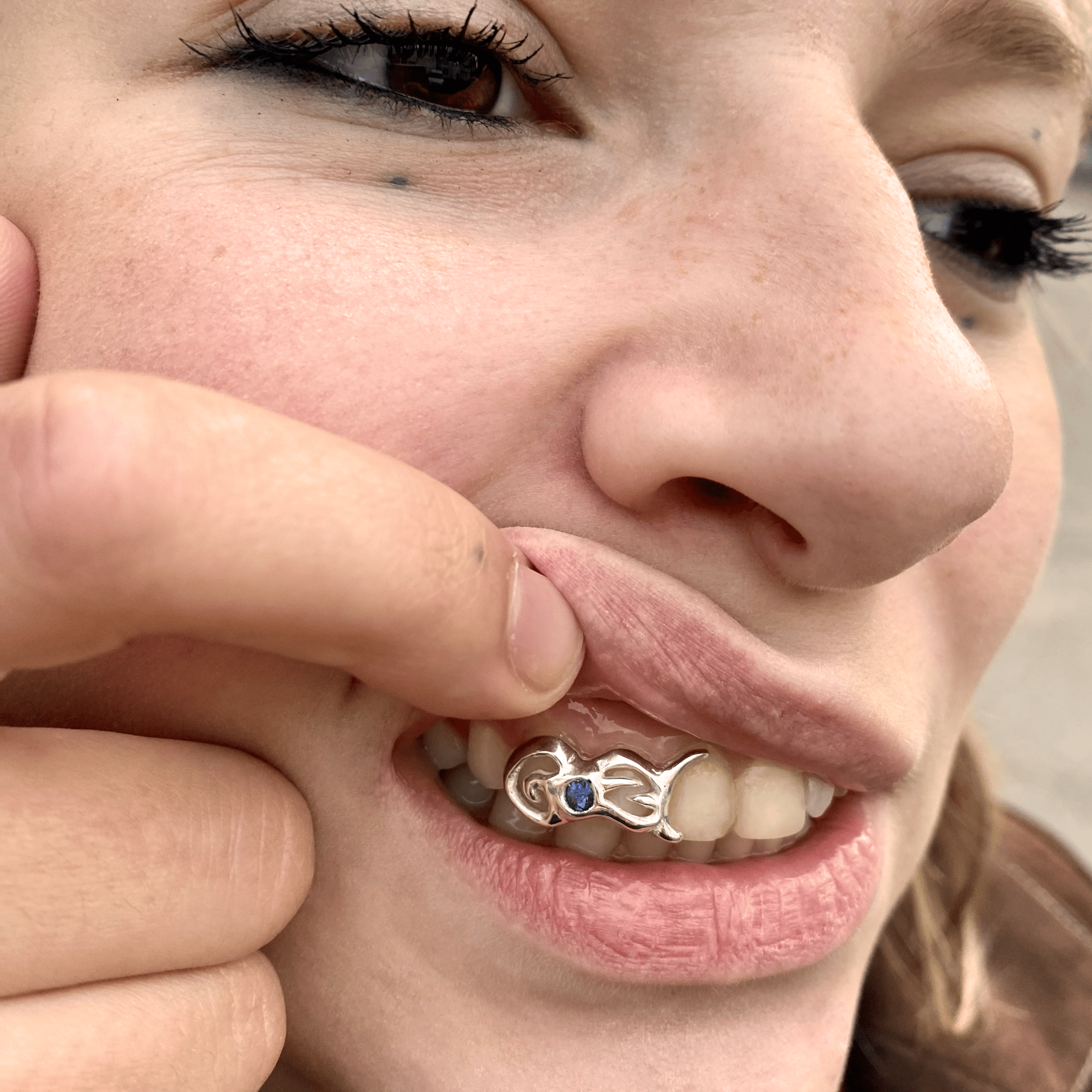 No two grillz are ever the same — each design is created individually. We can work with semi-precious stones, precious gems, or pure silver threads. All pieces are crafted from relatively soft 925 sterling silver, allowing the grillz to adapt perfectly to your bite and, with proper care, last a lifetime.